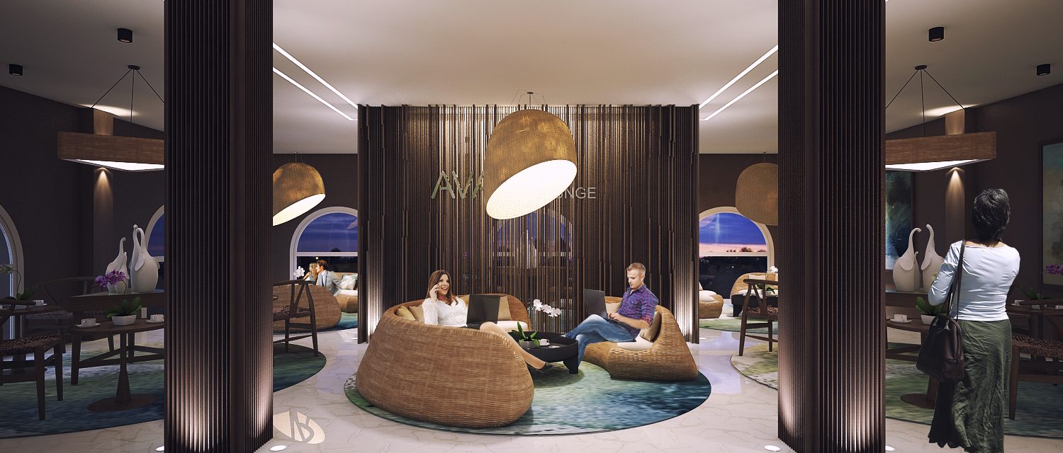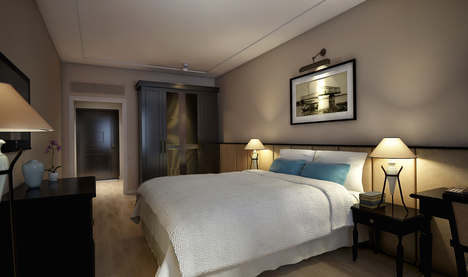 The bedroom has been redesigned with classic cream tones from Avani hotels, complemented by splashes of aqua blue for the brand’s youth, while the dark brown lines of the wood still draw attention to elegance and thickness.