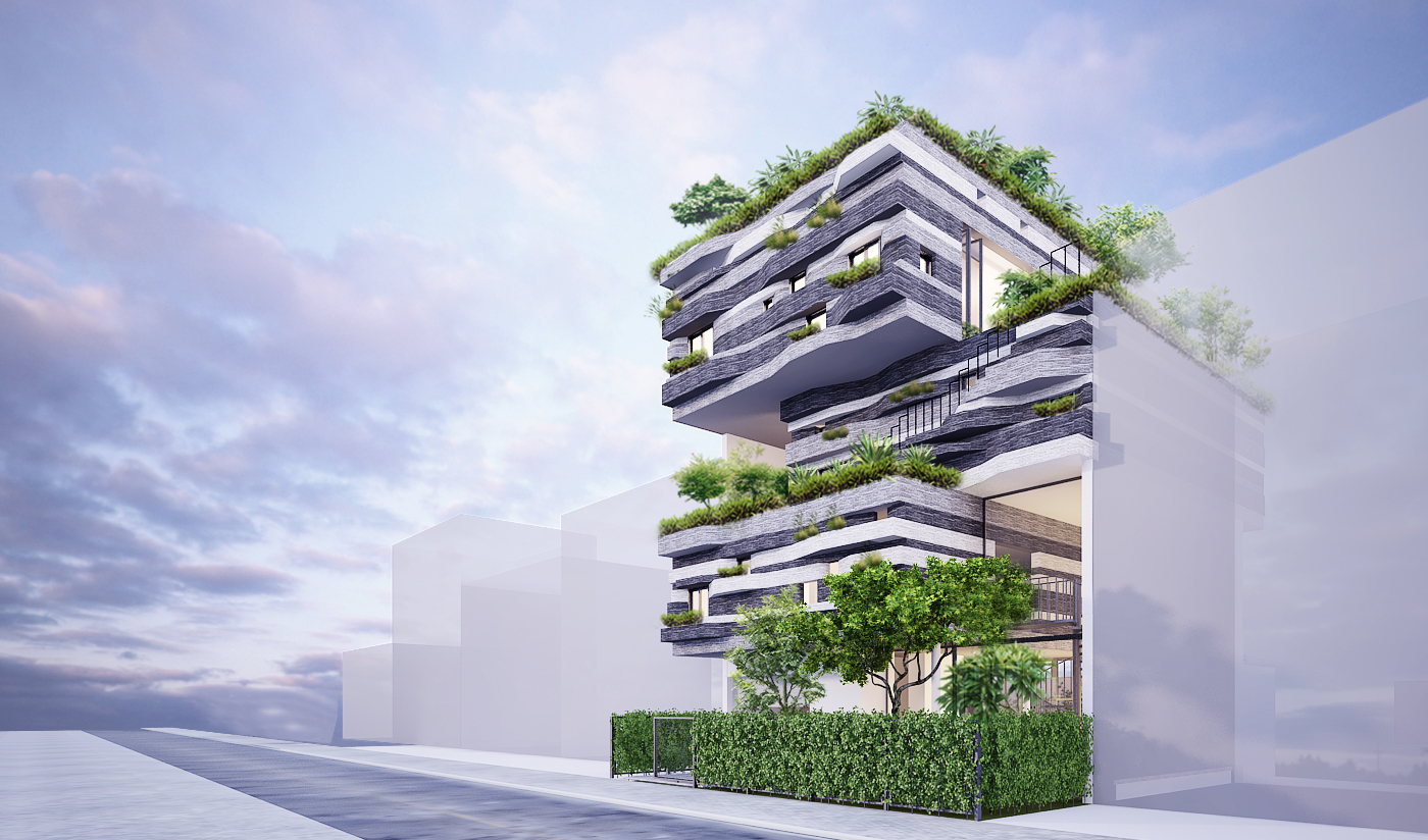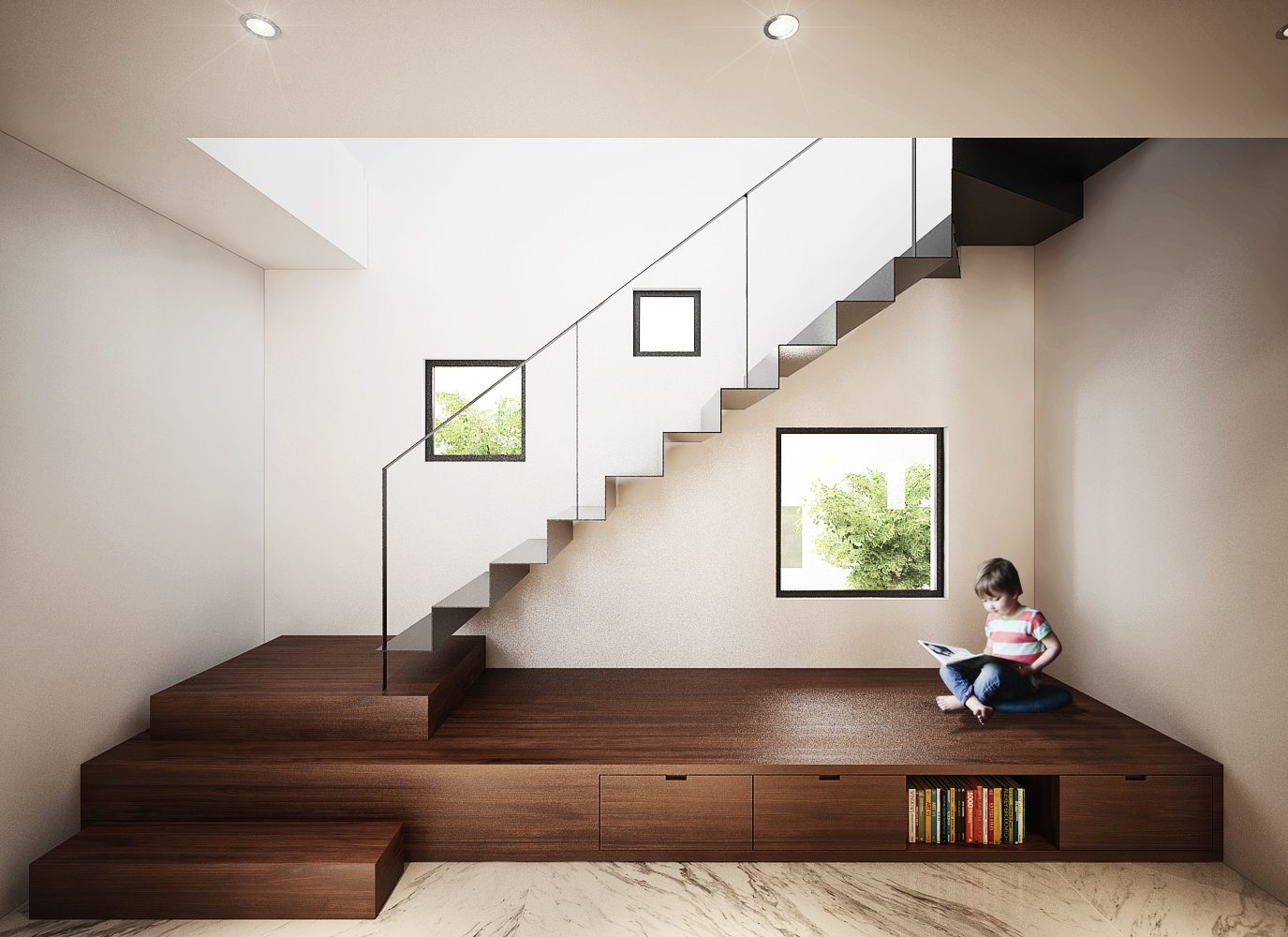 To introduce a 240m2 garden into the building, we designed staggering stories, each having its own garden space and character. Stairs are placed to connect these multi-story gardens. One can take a walk across this large garden in both horizontal and vertical dimensions.