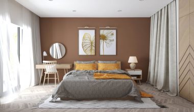 In addition, paint colors define spaces and are personal. Warm wall paint colors are used in the sleeping and tea areas. That contrasts with the white walls in the kitchen and other rooms. We use Faux painting techniques to make the apartment walls more diverse. The ceiling is designed with a sloping ceiling. Thereby creating a feeling of closeness and increasing the height of the common living space. The tea drinking area is like the old tea house in Son Tay. We have placed shelves for family souvenirs in the hallway to create accents and record memories.