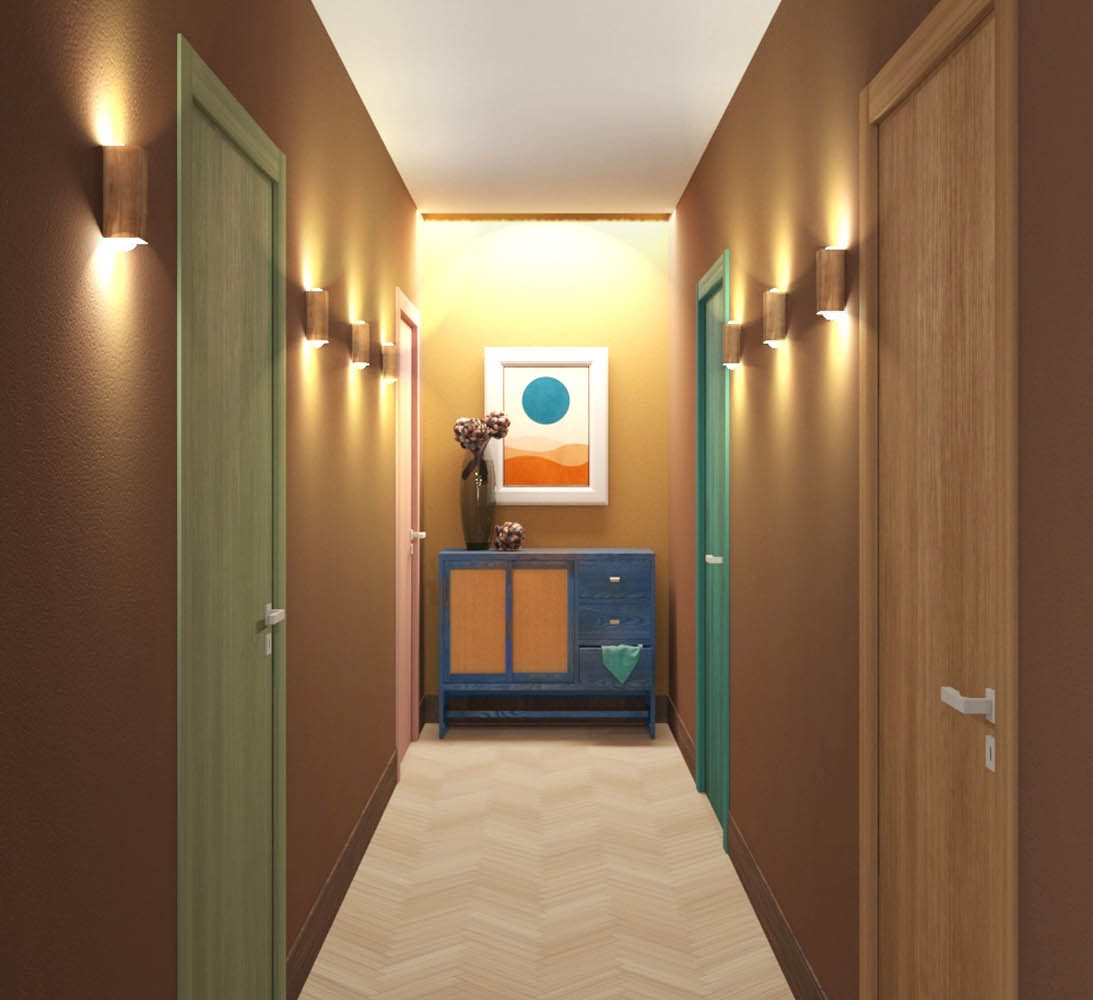 The ceiling is treated in an unusual way: sloping ceilings. The use of sloping ceilings both brings the feeling of being close to being in a grandparents’ house while increasing the height of the common living space. At the same time, we can create accents on the distribution of light on the ceiling. The ceiling will not be flat and boring like ordinary apartments.