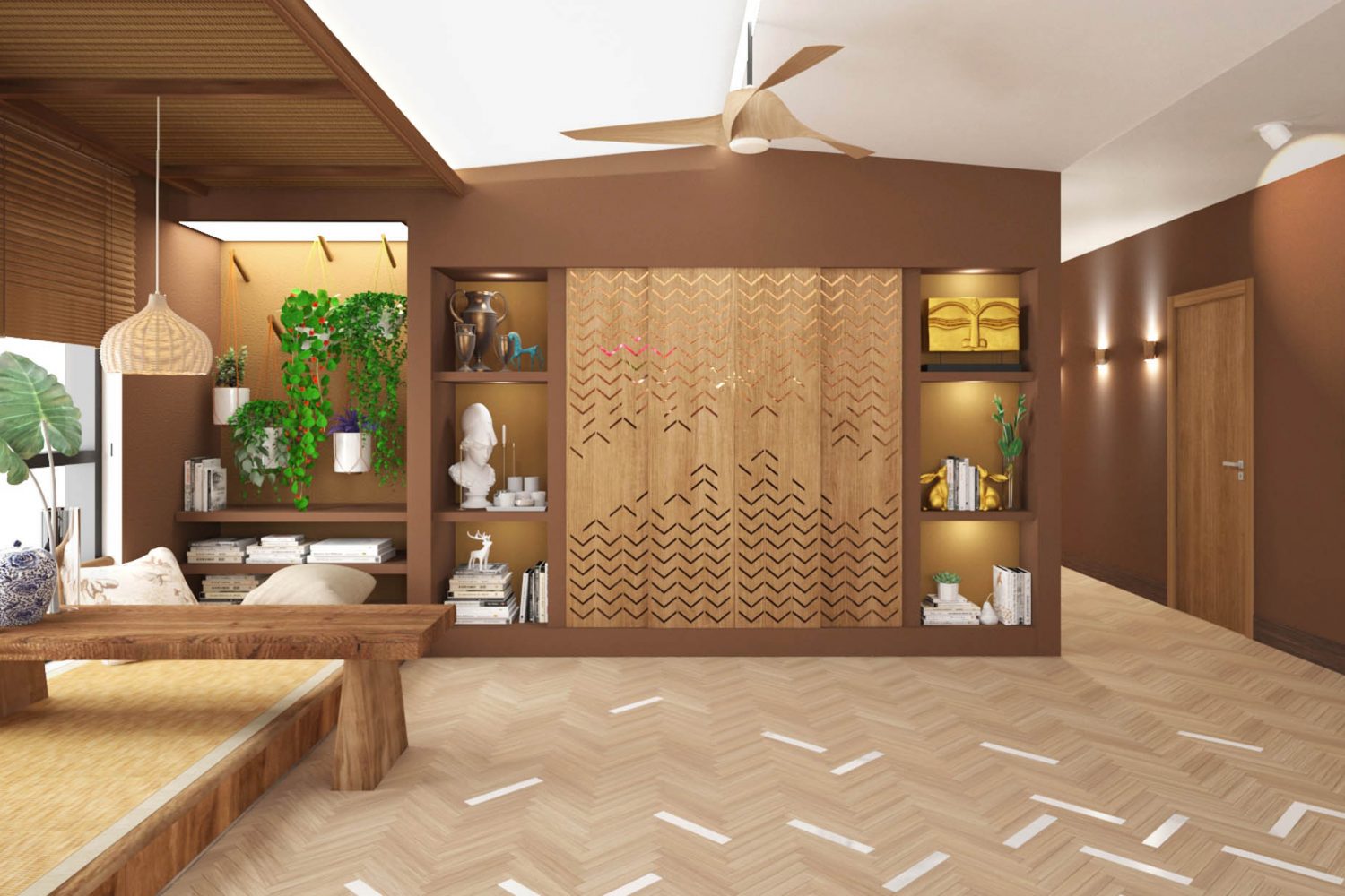 The buffer space makes the connection between static and dynamic spaces – a sharing space of the whole family. Inspire by the name “buffer space, it is the soul of the apartment. Where members spend a lot of time together. Where there is worship. Because of its important role, the design team intentionally blurred the boundaries between spaces.