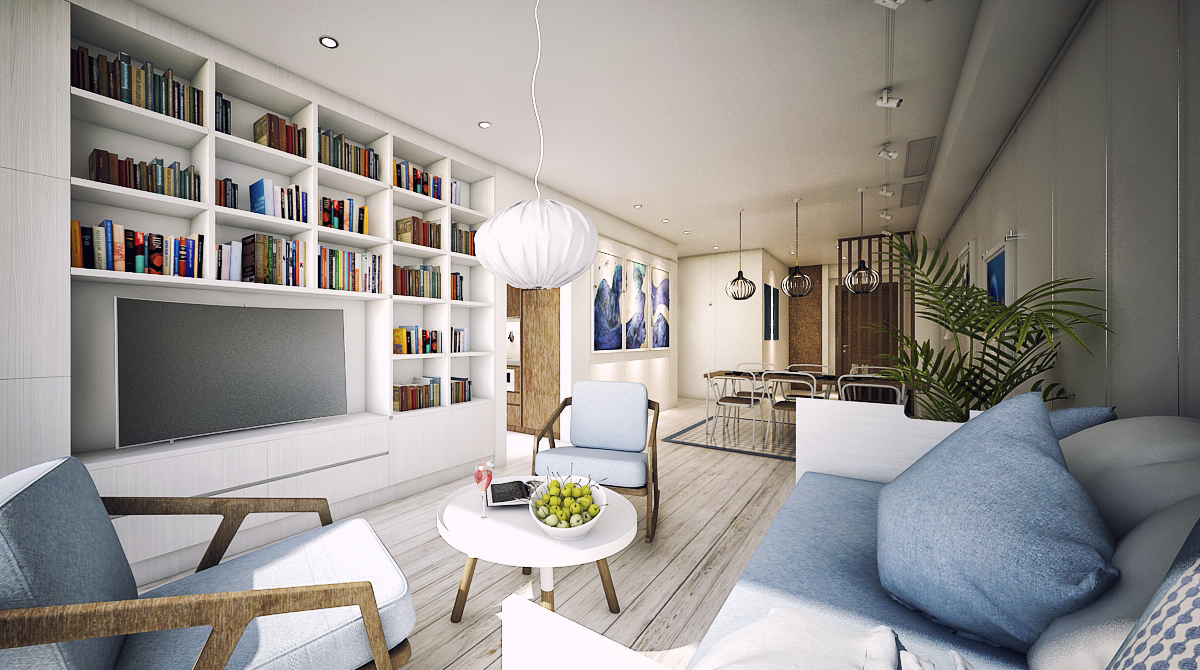 Hanoi Rental apartment Ecolife 1 uses Scandinavian style furniture. This style of furniture in metal and wood can lighten the general view of the space.