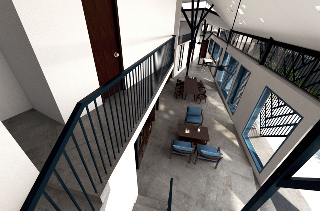 The bedrooms and bathrooms are arranged in a straight line behind the land. It is a place where the house catches the cool breeze and where it is quieter. The common living place contributes an immense part to the value of the house.
