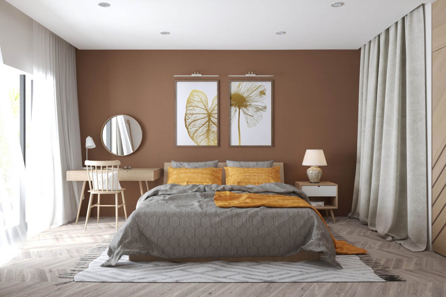 Ngoài ra, màu sơn còn định nghĩa các không gian và mang tính cá nhân. Màu sơn tường ấm được sử dụng trong khu vực ngủ và khu vực uống trà. Điều đó tạo sự tương phản với màu tường trắng trong khu bếp và các phòng khác. Kỹ thuật sơn hiệu ứng (faux painting) được sử dụng để làm cho các mảng tường căn hộ trở nên đa dạng hơn. Trần nhà được thiết kế với trần dốc. Qua đó tạo cảm giác gần gũi và tăng chiều cao không gian sinh hoạt chung. Khu vực uống trà được thiết kế như quán trà ngày xưa ở Sơn Tây. Kệ để đồ lưu niệm của gia đình được đặt ở sảnh hành lang để tạo điểm nhấn và ghi lại các kỷ niệm.