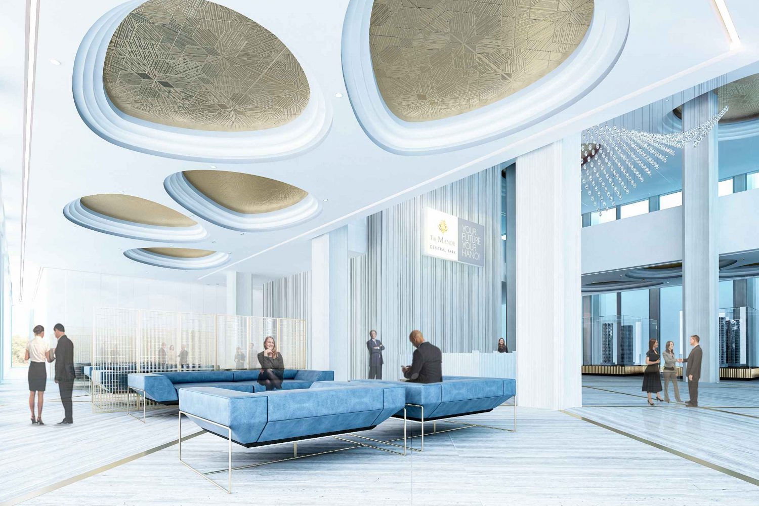 Không gian nội thất khu vực công cộng là không gian lớn thông tầng. Các vật liệu sang trọng phù hợp với màu logo của dự án toát lên vẻ lịch sự. Tạo nên một không gian đa năng đẹp và hiệu quả. Thu hút sự chú ý và gây ấn tượng với khách hàng ngay từ cái nhìn đầu tiên.