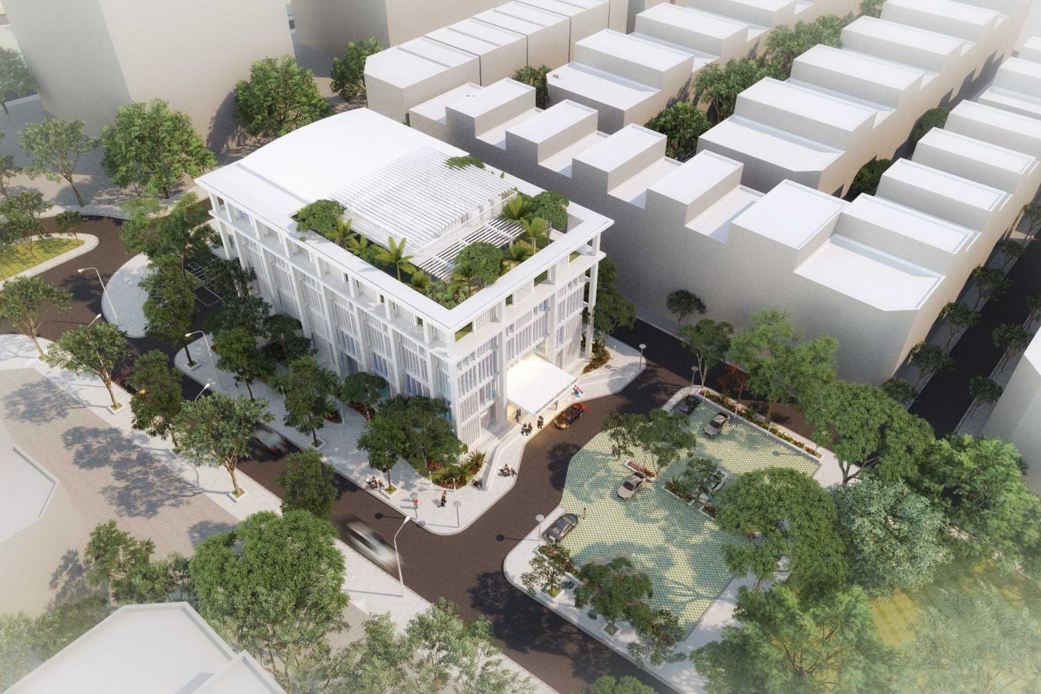 Khối văn phòng được thiết kế theo xu hướng văn phòng mở giúp văn phòng rộng rãi, tận dụng được diện tích mặt bằng và thoáng đãng hơn. Có không gian làm việc chung tạo điều kiện cho mọi người làm việc năng động, sáng tạo. Tăng sự tương tác dễ dàng trao đổi công việc giữa các cá nhân và các nhóm với nhau. Hiện đại phát huy tối đa thông gió và chiếu sáng tự nhiên.