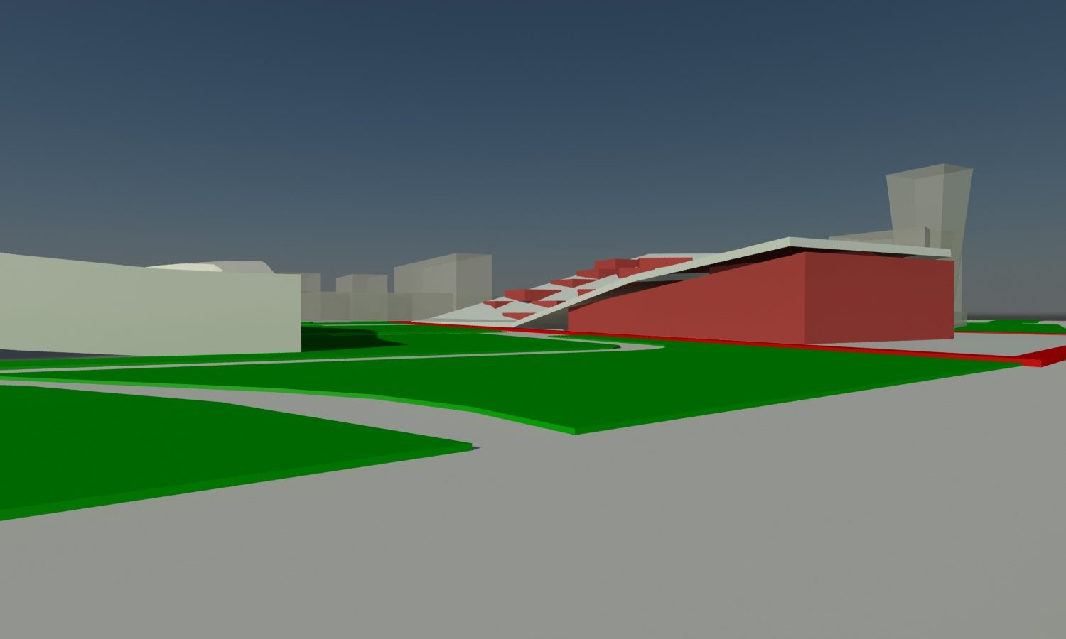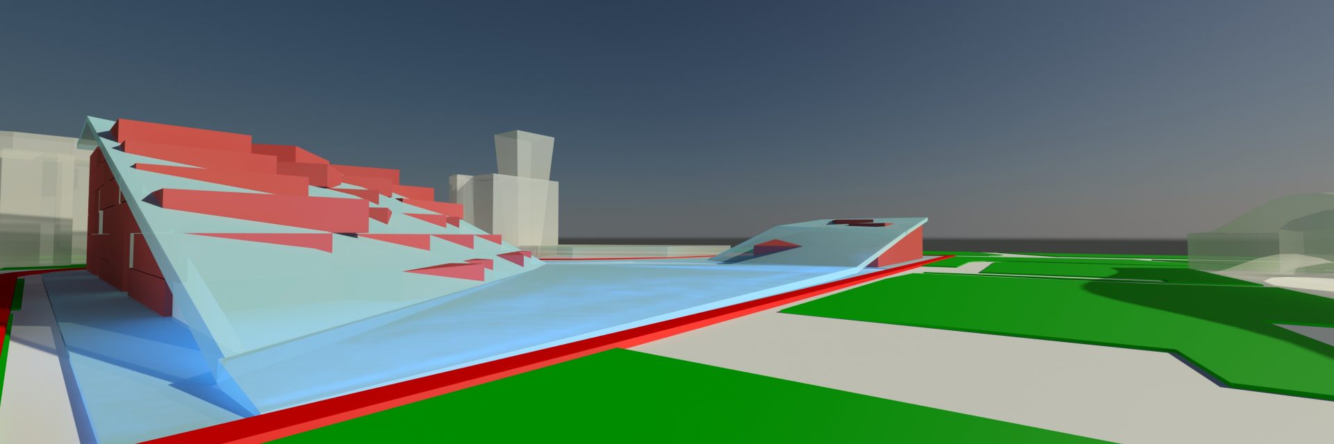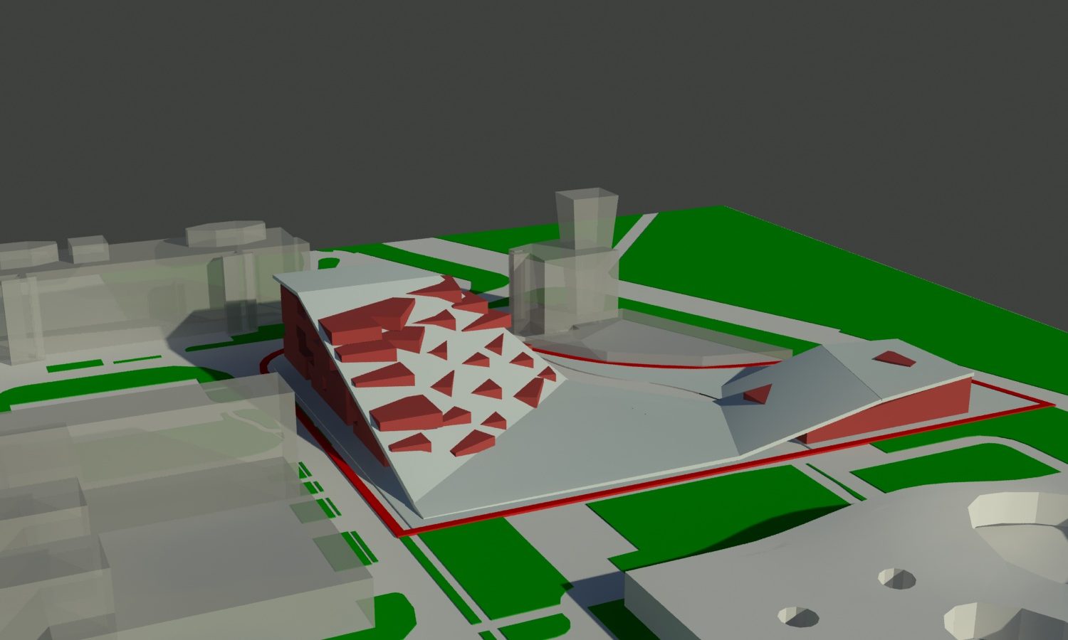 Ý tưởng kiến trúc của đồ án của Trung tâm phát thanh và truyền hình là dâng cao hai khối công năng phía Bắc và phía Nam, hạ thấp phần trung tâm để mời đón mọi người tiếp cận với phần mái công trình và mở thoáng hướng nhìn xuyên qua khu đất. Vùng hạ thấp trở thành không gian công cộng hòa nhập với trung tâm học tập ROLEX.
